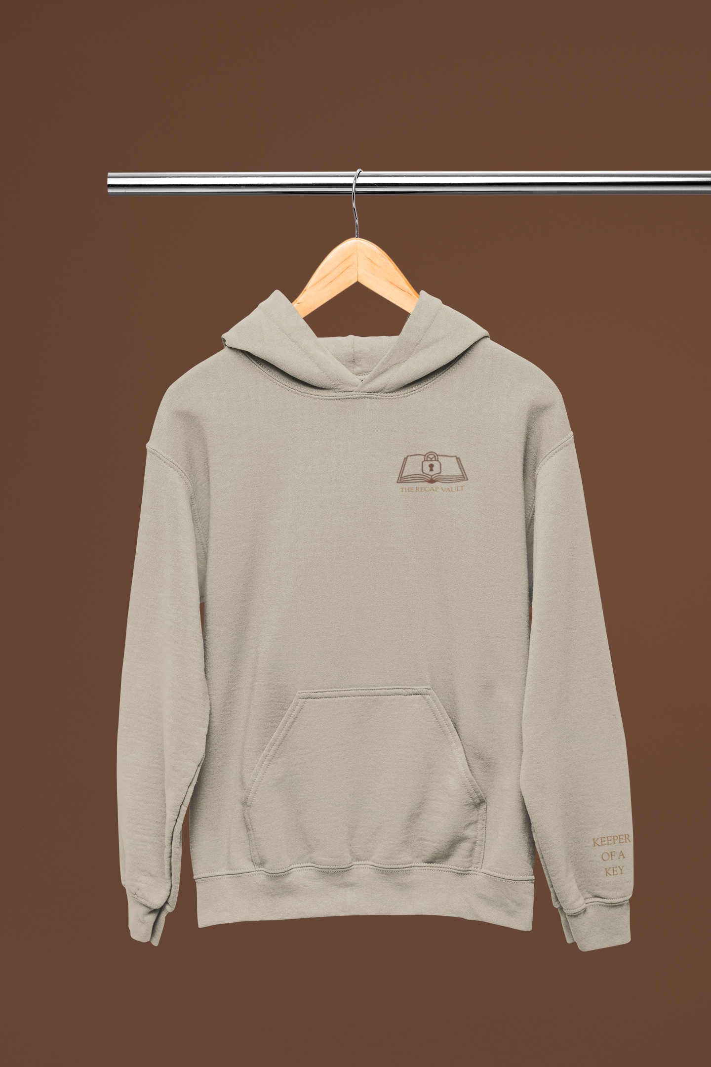 A core piece for cozy readers — the Keeper of a Key Hoodie features The Recap Vault emblem embroidered on the chest and “Keeper of a Key” stitched in Old Gold on the sleeve. A minimal, elevated design built for comfort and storytelling.